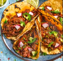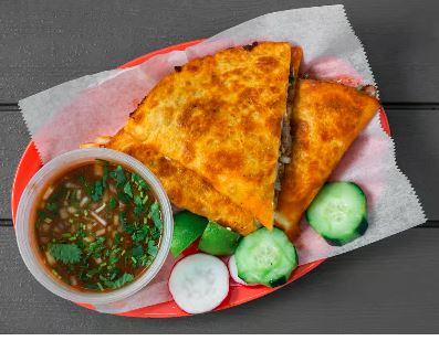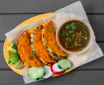 Servido con cilantro, cebollas, pepinos, rábanos y limones / Served with cilantro, onions, cucumber, radish and lemon.