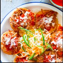Preparado con tomate, cebolla y queso / Prepared with tomato, onions and cheese