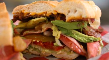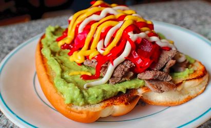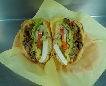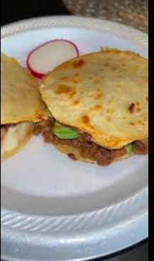 Acompañado de carne, lechuga y queso / Acompanied by meat, lettuce and cheese.